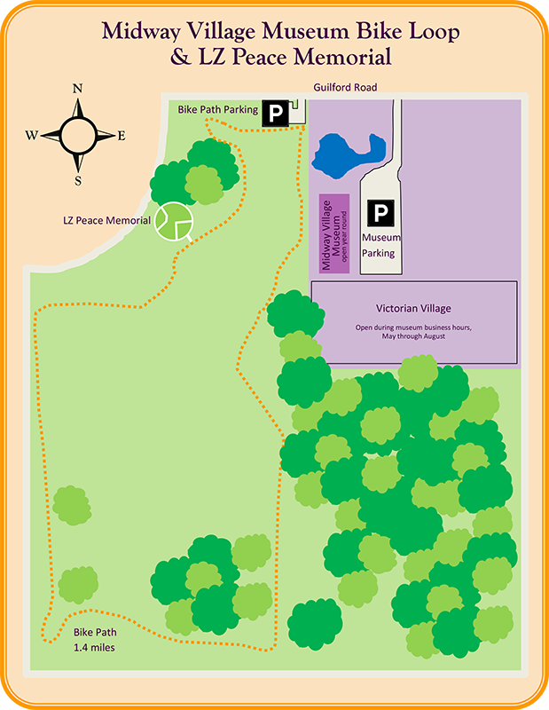 Be here when flags are flown and songs are sung. Mothers talk of their sons and fathers beam with pride. Old friends meet and Hueys fly one more time. Patriotic music fills the air. Prayers are said and tears are shed. So bring your flag and your family and spend the day. There’s so much to see and do at Midway Village. There are benches for relaxing and remembering the sacrifices made. Come to the LZ Peace Memorial and find an old friend on the wall. (Photo credit: Carson York)
